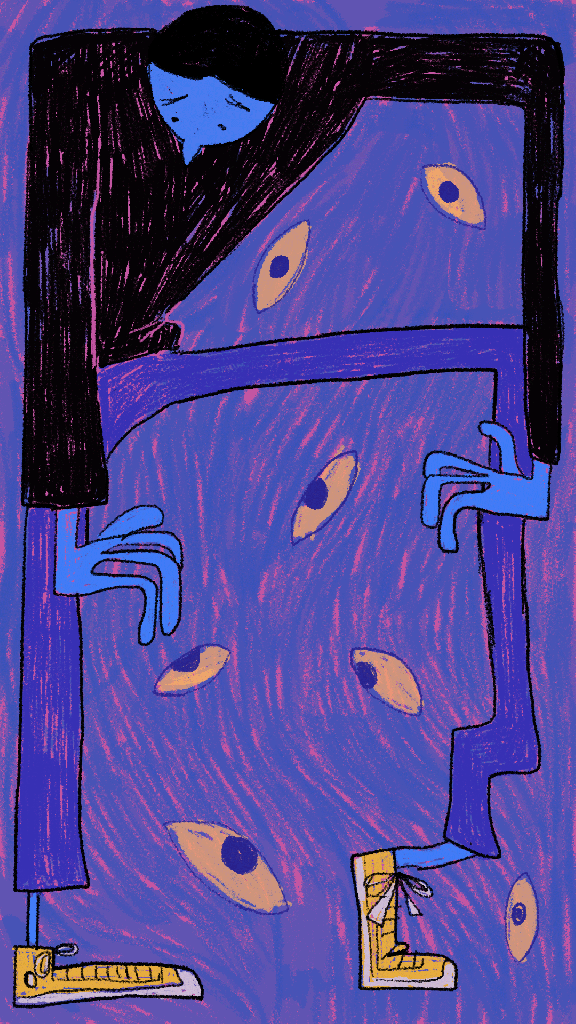 For their single «Strangler» I made both the cover art and an animation loop for Spotify, that reflected the feeling of being watched and feeling suffocated as well that it went with the pop and catchy feeling of the song.